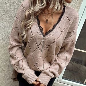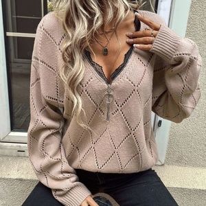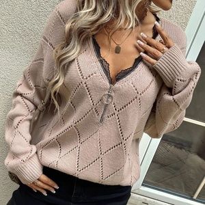 Cozy Dusty Pink Lace Detail oversized Sweater Top