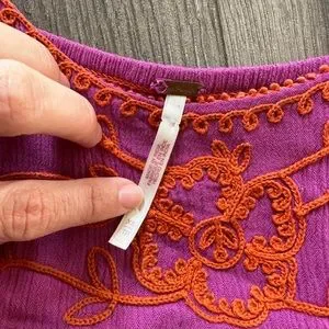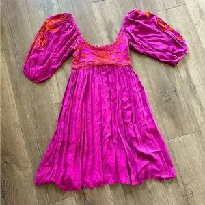 Free People Vibrant Purple & Orange Puffy Sleeve Princess Dress Cottagecore