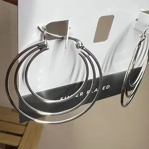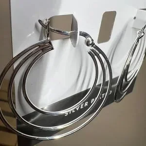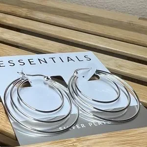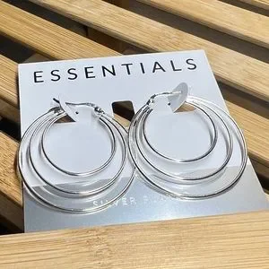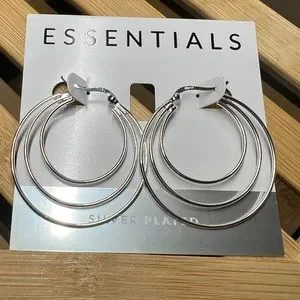 Essentials Silver Plated Triple Graduated Hoop Pierced Earrings 1 1/2”