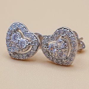 "Hollow Heart Shiny CZ Filled Heart Earrings for Women, INDN8602