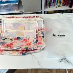 NWT Novawo set of 5 floral travel zippered bags to organize items in your suitcase. Each item zips closed and there are varying sizes. Never used.