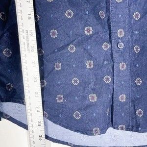 - This classic fit shirt from American Eagle. Features geometric print, collared, long sleeve, curved hemline, button closure, and corduroy fabric.