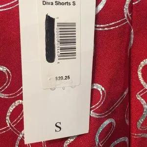 Funky Diva Shorts Glittery Red with Shimmering Swirls throughout. Size Small, New with Tags.
