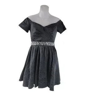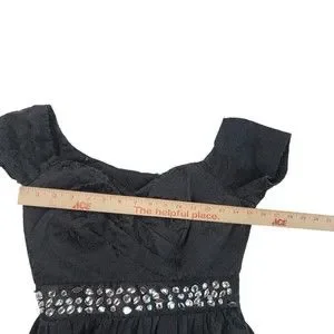 Trixxi Fit and Flare Mini Cocktail Dress Womens Junior Sz M Black Floral Gems