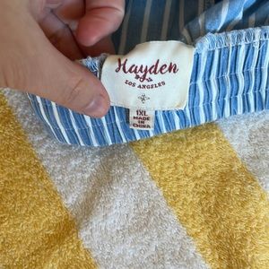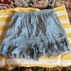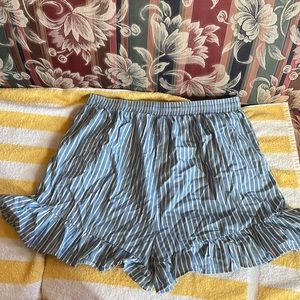 My Violet Blue High Waisted Pull On Pin Stripe Ruffle Shorts