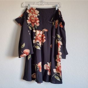 Women's Smocked Black Floral Dress