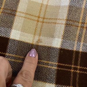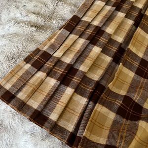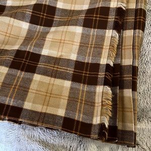 Vintage long plaid wool skirt pleated fringe leather buckles acrylic blend UK