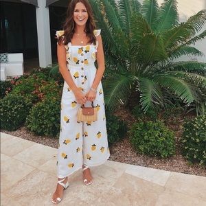 Anthropologie Red Carter Allison Lemon Embroidered Linen Jumpsuit