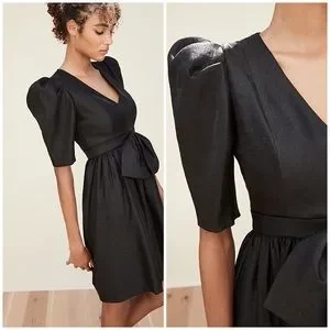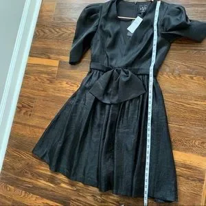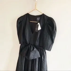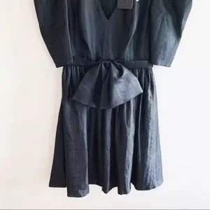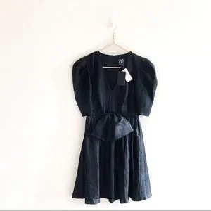 Black Halo Eve Black Puff Sleeve Cocktail Dress Bow Detail 80s Vintage Inspired