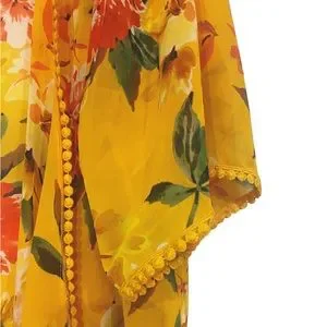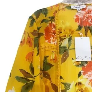 EMORY PARK Stitch Fix Landry Crochet Trim Open Kimono Yellow Floral Size Med New