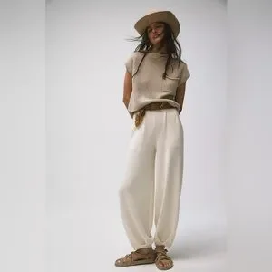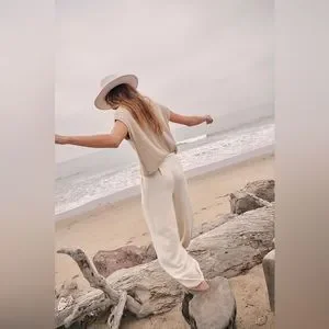 Brand new, but I did have to remove the tag and wash the pants because my cat knocked over a drink and it required a washing machine lol but other than that they are brand new…I’m lowering the price because of that incident…this popular free people set sells out quick!! They restocked and sold out almost immediately!! Such a cool comfy look, great quality and looks so good on anybody, it’s such a flattering outfit!! Comes with both pieces seen in the photo