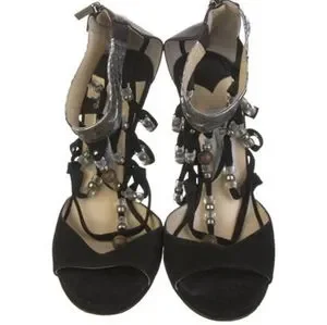 Jimmy Choo Black Brown Beaded Stilletto Heels Sandals Size 40 9