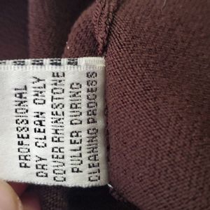 Beautiful rayon/lycra blend sweater, has some stretch to it. Double zipper with jewels and rivets in symmetrical pattern. Size xs, 23" from shoulder to bottom. Worn only a few times, in excellent condition. Non smoking home.