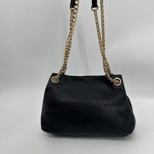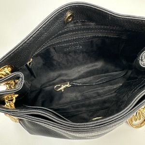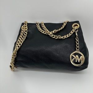 Michael Kors Black pebbled leather shoulder bag gold chain straps