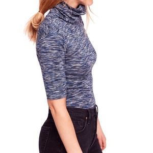 Free People Women's Blue Sunshine Space Dyed Half Sleeve Turtleneck Shirt