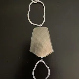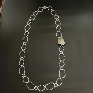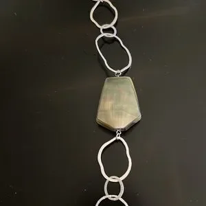 NWOT Fabulous statement necklace. Goes from fun and flirty to dressy! Mother of pearl stone on silver link chain with toggle closure. Never worn and always in a smoke free environment! Comes with drawstring pouch.