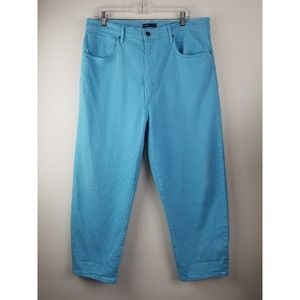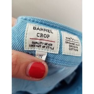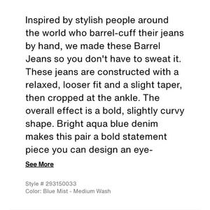 Levi's Made & Crafted BARREL WOMEN'S JEANS 31 AQUA BLUE Straight Raw Hem Loose Fit, these run a little big because a more relaxed fit . Cropped Length , High rise. Unique aqua color.