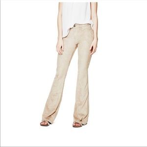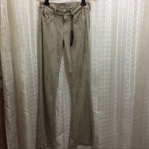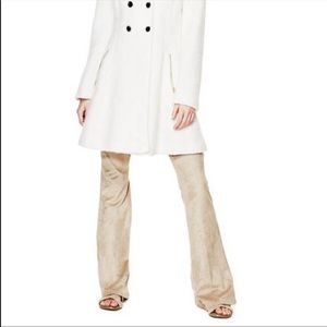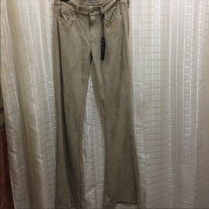 New with tag. Perfect for Fall and Winter. Channel the season's '70s mood with our coveted Flare Pants. With their faux-suede construction and retro-inspired silhouette, this pair is the perfect addition to your new-season wardrobe. Faux-suede flare pants. Medium rise, sits at hips. Slim fit through hip and thigh. Belt loops. Match with your favorite booties. Four pocket construction. Zip fly with button closure. 87% Polyester, 13% Spandex. Dry clean. Trending style.