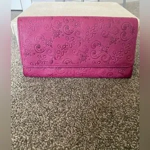 Deep purple/pink leather travel wallet/clutch by Saddler in excellent condition. Please note darker than appears in photos