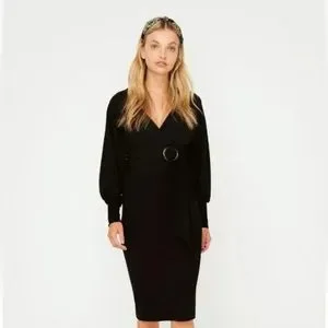 This is a great Sheike Mirage Mirage Dress featuring long lantern sleeves with waistband and wrap midi dress. Pair back with our black Heels and gold Earrings to complete the look.