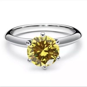 CERTIFIED 1ct. t.w. Moissanite Diamond Yellow Round Solitaire Ring NEW