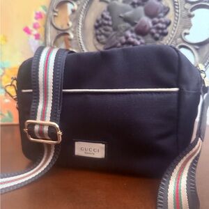 Authentic Gucci pouch is converted to a crossbody. bag by adding rivets and adjustable Nylon strap( unbranded)