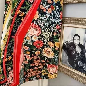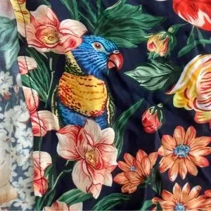 Tropical floral. Scarf type print. Birds in pattern! Lovebirds? Maybe parrots? I'm not sure lol.