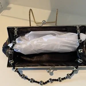 Hand or shoulder bag, fold in handle made out of beads, perfect condition never used, no tags