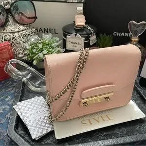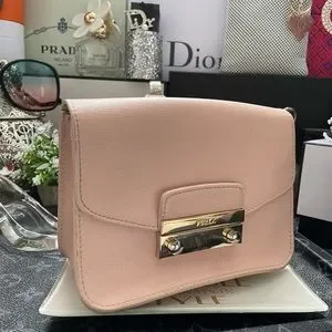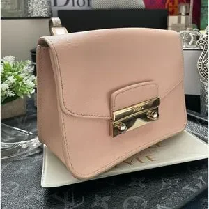 FURLA Julia Mini Crossbody Bag, Blush Pink Saffiano Leather✨💖Preloved