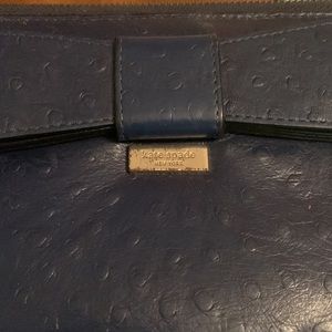 Kate Spade Bow Handbag + Large Ziparound Wallet Clutch Set Navy Ostrich