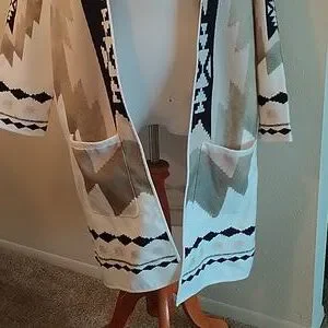 Aztec print open coat jacket size small