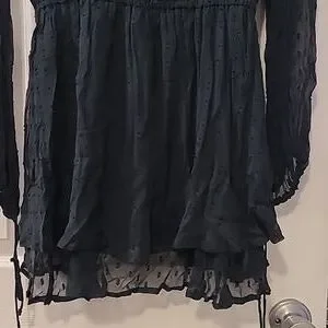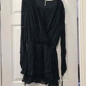 Free people Romper very flirty and flowy with some stretch to the waist sleeves have elastic at the wrist with a cute tie bottom is tiered and lined