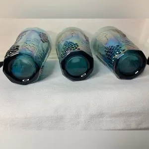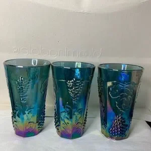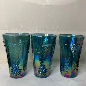 Indiana Blue harvest grape carnival set of three glasses. Shown are all sides of glasses and measurements. See all pictures as they are part of the description.