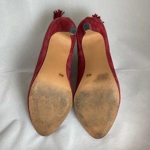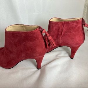 Red suede booties with 3 inch heels. Size 6.5, with rear zipper and tassel. great condition.