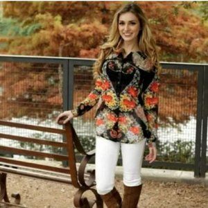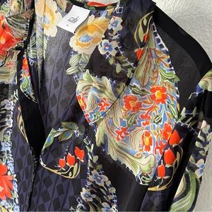 CABI Floral Button Down Front Shirt Collared Long Sleeves Size Small