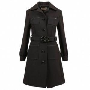 GUCCI black wool jacket large logo belt button down cuff long coat Luxury NWT
