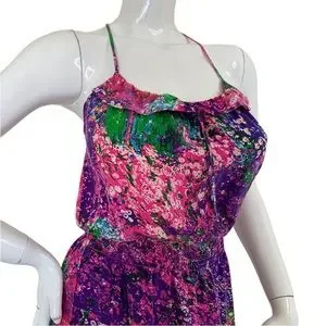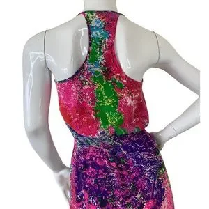 Sexy resort vacation style, preppy, beach goddess, festival, concert, boho, bohemian, neon, splatter spray paint pattern, artist, artsy, eccentric, dopamine wear