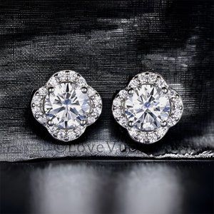 Certified 1ct. t.w. Diamond Clover Halo Stud Earrings