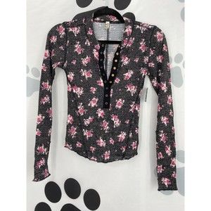 Free People NWT One of the Girls Printed Henley Pink Floral Long Sleeve Top New