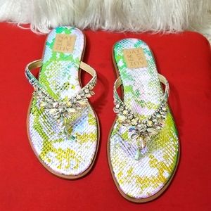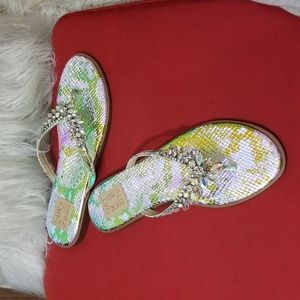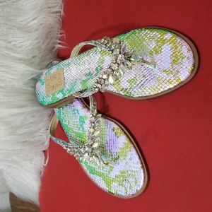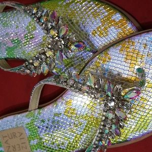 Glitter silver and Gold with Stones Naturalizer leather Thong Sandals