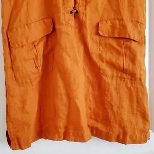Anthropologie Maeve orange rust collared linen short sleeve dress with front tie and front pockets. Good condition.
