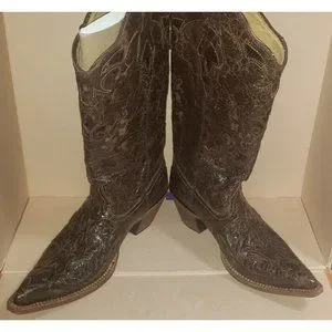 Corral Vintage Leather Inlay Pointed Toe Cowgirl Boots C2109 Size 7.5M in excellent used condition as you can see in the pictures