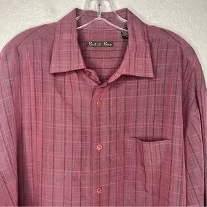 Batik Bay Shirt, Men's Size XL, Red, Button Up Long Sleeve Dress Shirt Plaid.