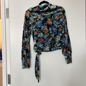 Zara Velvet faux wrap top floral print (matching pants sold separately)