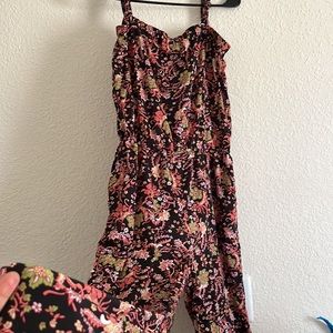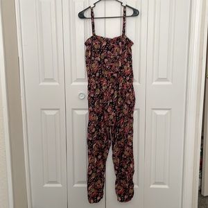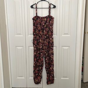 Cherokee floral Print Jumpsuit Sz M/L Black Multicolored