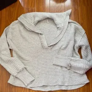 Free People Gray Knit Collared Sweater