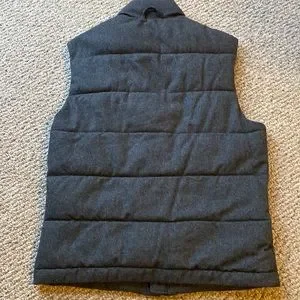 Wool blend puffer vest with zip and button closure, two front zip pockets and full lining. size M Charcoal GRAY