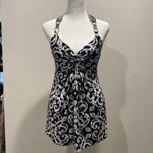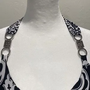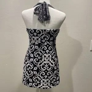 White House Black Market Halter Top. Black and White, Fitted Around The Bust Then Hangs Loose And Comfortable. Pretty Metal Accent On The Halter Straps.