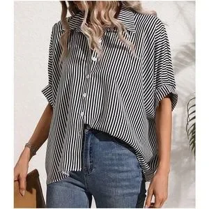 011 Stripes Button Down Boyfriend oversized Shirt