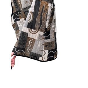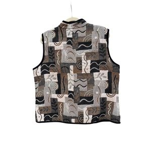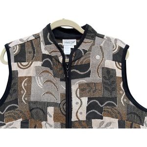 Coldwater Creek XL Tapestry Vest Made in USA Black Gray Brown Neutrals Zip